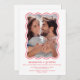 Apresentando o Convite para Casamento de Quadros de Imagens Retro-Rosa e Red Wave, com designs de rabanete e uma borda de onda na moda. Esta papelaria moderna e contemporânea inclui um código de QR personalizável, acrescentando um toque de tecnologia aos seus convites. Trendy e whimsical, este convite é perfeito para casais que buscam uma maneira única e memorável de compartilhar seu dia especial.