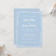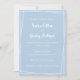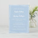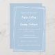 Um belo convite de casamento em azul claro, com tipografia de na moda para os nomes dos casais. O convite exibe um design geométrico nas bordas, criando um efeito de quadro elegante. Personalize o convite com os detalhes do dia especial, clicando no botão Personalizar.