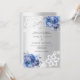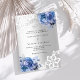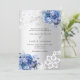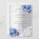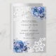 Para um casamento elegante e romântico. Um fundo com aparência prateada falsa decorado com flores azuis, rosas e renda branca. Personalize e adicione seus nomes e detalhes.