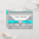 Convite Casamento de Renda Prata e Azul Turquesa Elegante