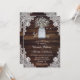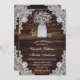 O convite para o casamento do bebê da Rústica Country, com dentro de hálito do bebê, um jarro de pedras em madeira rústica e fundo de renda enfeitado com luzes de cordas. Personalize facilmente o nosso convite para o casamento floral do país rústico para o seu país rústico, ou festa de casamento de celeiro inspirada pelas flores do hálito do bebê.