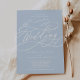 Este convite de casamento elegante de rico chic azul-bebê da Coleção Sophia é perfeito para um casamento simples. O clássico design moderno apresenta espirais ricos e turbilhões brancos com magnífica e elegante tipografia à mão.