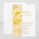 Um convite de casamento moderno com um painel de rosa amarelo. Um design minimalista na moda. Para casamentos que organizaram a cerimônia para começar em um local diferente das festividades de recepção, ambos os locais foram incluídos no convite.