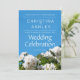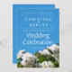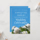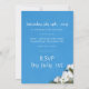 Belo convite para o casamento floral com rosas brancas sonhadoras e um céu azul claro de verão.