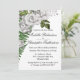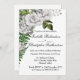 Este convite muito elegante apresenta um lindo buquê floral de rosas brancas, pétalas de rosa verde e frondes de samambaia que o tornariam muito adequado para um casamento de jardim ou para qualquer outro tipo de casamento de temas botânicos. A design inclui também bagas brancas e folhas verdes menores. O reverso do convite apresenta um solteiro, grande ferrão em um fundo branco comum.