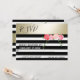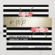 Convite de resposta de casamento com rosas em aquarela com listras pretas/brancas douradas e modernas.