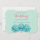 Um convite de casamento com rosas de chá pintados com aquarelas. Chic e na moda. O fundo é uma cor verde da menta.