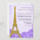 Convite Casamento de Rosas Roxos da Torre Eiffel Dourada V