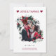 Obrigado russo de casamento no inverno você cartão com fotos com flores de rosas de coloração branca e vermelha de lata-lama de lata branca e vermelha de lata-lama de cor-de-rosa sazonal, ramos de abeto verde de caçador de pinheiros e bagas ocas sobre um fundo branco claro.+++++++ Personalize-o com 2 fotos (um quadrado na frente e uma paisagem no verso), com sua assinatura e texto na frente e trás! +++++++++ Se você não precisa de foto e texto ao contrário, basta apagá-los!
