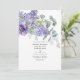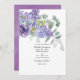 Convite de casamento tradicional com folhas de eucalipto e plantas suculentas misturadas com flores em acentos de lilás pastel, roxo e violeta. Ideal para qualquer tema ou casamento de jardim.