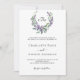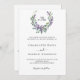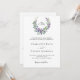 Fundo branco. Uma coroa floral feita de flores lavandas e de eucalipto verde de cor aquosa. Personalize e adicione suas iniciais, nomes e detalhes do monograma. Texto preto. Voltar: adicione o URL do seu site de casamento ao código QR para obter detalhes e/ou RSVP.