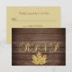Cartões de resposta de casamento RSVP elegantes e modernos com topografia dourada e painéis de madeira. Folha metálica dourada. Tema rústico e country. Modelos editáveis - adicione seu texto. Entre em contato com o designer para outras variações. Encontrado na coleção de casamentos 'FALL IN LOVE - COUNTRY'.