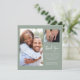 Este cartão branco e verde-boho tem espaços reservados para dois tamanhos de fotos para obrigado de seus convidados. A parte de trás do cartão tem um floral de flor silvestre e espaço para a sua mensagem manuscrita. Pode ser usado para qualquer ocasião ou celebração para mostrar seu apreço