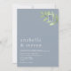 Convite Casamento de Sálvia Azul Empoeirado Monograma Verd