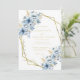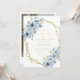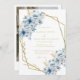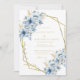 Faça uma impressionante primeira impressão com este Elegante Convite de Casamento de Bloom de Frame Geométrico Floral Azul. Apresentando uma sofisticada mistura de florais azuis e marinhos empoeirados, este design é lindamente enquadrado dentro de uma moderna fronteira geométrica de ouro, acrescentando um toque de elegância e romance.