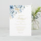 Faça uma impressionante primeira impressão com este Elegante Convite de Casamento de Bloom de Frame Geométrico Floral Azul. Apresentando uma sofisticada mistura de florais azuis e marinhos empoeirados, este design é lindamente enquadrado dentro de uma moderna fronteira geométrica de ouro, acrescentando um toque de elegância e romance.