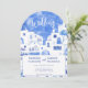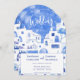 Uma pintura aquosa moderna da cidade pitoresca de Oia, na ilha grega de Santorini, para celebrar seu amor com um toque de elegância e beleza. Inspirados pelas impressionantes vistas da ilha, esses convites apresentam uma pintura aquosa mesmerizante de Oia em tons azuis e brancos sonhosos. Perfeito para um casamento de destino, esses belos convites vão dar o tom para seu dia especial e garantir que seus convidados estejam contando os dias para sua comemoração inesquecível na Grécia. Arte original de Nic Squirrell.