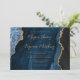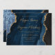 Este elegante convite de casamento moderno apresenta uma marinho azul de aquarela agata de fundo, aparada com falso brilho dourado. O texto personalizável combina um script moderno de cor dourada, fontes copperplate e itálico. O verso apresenta um design azul-marinho e um agate-ouro correspondentes.
