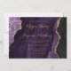 Este elegante convite de casamento moderno apresenta uma cor d'água roxa, cor d'água, que é aparada com uma falso brilho dourado. O texto personalizável combina um script moderno de cor dourada, fontes copperplate e itálico. O verso apresenta um design de agate roxo e dourado correspondente.