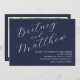 Convite Casamento de Script Azul com Marinho de Foto Minim