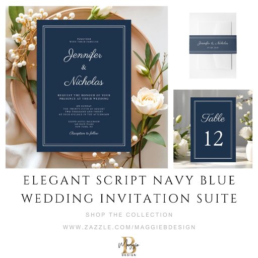 Elegant Script Navy Blue Wedding Invitation SuiteCriado por Maggie B Design