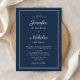 Convite De Casamento De Script Azul De Marinho Elegante Personalizado.