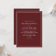 Um convite de casamento clássico, elegante e burgundy, com caligrafia de script. Perfeito para a noiva moderna ter um caso formal. Consulte a coleção de cheios aqui: https://www.zazzle.com/collections/elegant_burgundy_classic_script_wedding-119551906868087326 Entre em contato com o designer para obter produtos correspondentes. Copyright Anastasia Surridge for Elegant Invites, todos os direitos reservados.
