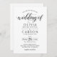 Você está convidado para um casamento incrível! Esses convites para casamento, preto e branco, modernos e chicos apresentam um design tipográfico na moda preto com destaque para o roteiro de caligrafia e texto elegante personalizado que pode ser personalizado com nomes de noiva e noivo, data de casamento, local da cerimônia e recepção para seguir os detalhes. Por favor, compre nossa Coleção de Casamentos de Script Branco e Preto Moderno para coordenar designs.