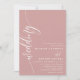 Convide os entes queridos para comemorar seu dia especial com este elegante convite de rosa. Apresentando uma design minimalista com um belo roteiro caligráfico para a palavra "casamento" e tipografia moderna e limpa para os detalhes, este convite dá o tom para um evento sofisticado e memorável. A cor macia e poeirenta do rosa e linhas simples adicionam um toque de graça e refinamento, fazer ideal para uma celebração de na moda. Personalize os detalhes para criar um convite único e bonito para o dia do seu casamento.