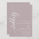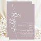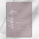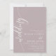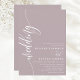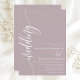 Convide os entes queridos para comemorar seu dia especial com este elegante convite de casamento de lavandas empoeirada. Apresentando uma design minimalista com um belo roteiro caligráfico para a palavra "casamento" e tipografia moderna e limpa para os detalhes, este convite dá o tom para um evento sofisticado e memorável. A cor púrpura macia e poeirenta da lavanda e as linhas simples adicionam um toque de graça e refinamento, fazer ideal para uma celebração de casamento de na moda. Personalize os detalhes para criar um convite único e bonito para o dia do seu casamento.