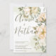 Convite Casamento de Script de Folhas Verdes Florais Branc