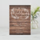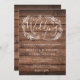 Um convite de casamento rústico, com uma delicada garagem floral rústica desenhada à mão de folhagem botânica com tipografia de na moda, sobre um fundo de madeira rústica. Personalize com sua informação especial do dia do casamento. Projetado por Thisnotme©