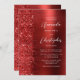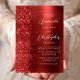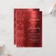 A borda esquerda deste elegante convite de casamento moderno apresenta uma borda falsa vermelha. O texto personalizável combina manuscrito branco e fontes sans serif em um fundo vermelho de metal escovado. O lado inverso apresenta um design de metal embebido e brilhante correspondente.
