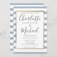 Convite Casamento de Script de Stripe Azul Elegante Dusty