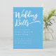 Este convite de casamento bonito apresenta um esquema de cor azul e branca. É combinado com fontes sans serif e script, que definem o título 'Sinais de Casamento', os nomes dos participantes e os detalhes do casamento, incluindo a localização, data e hora. Este cartão é perfeito para um casamento lésbico. ⚠ O título é Singapura. Para usar caracteres especiais, copie-os em www.zazzle.com/singapore_font_glyphs_contact_sheet_poster-228137063147332493 ⚠ Navegar na minha coleção para envelopes e artigos de papelaria correspondentes. ・ ・ ・ Para mais suites de casamento, visite minha loja Zazzle.com/EventsByJessicaAmber