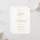 Este elegante convite de casamento é eterno, seu design é simples e minimalista. O design apresenta detalhes personalizáveis de convites de casamento em tipografia de escrita em ouro clássico; em fundo branco sempre elegante e sofisticado. Nota: a cor do plano de fundo será alterada com base no tipo de papel que você escolher para seus convites.
