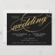 Convite Casamento de Script Dourado e Preto Moderno Único