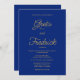 Este elegante convite de casamento é eterno, seu design é simples e minimalista. O design apresenta detalhes personalizáveis do convite de casamento na tipografia do roteiro clássico de ouro; em um fundo azul real sempre elegante e sofisticado.