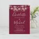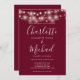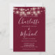 Convite de casamento para assinatura de burgundy elegante com luzes de cordas bonito e nomes de estilo de assinatura, este convite de casamento de na moda pode ser personalizado com suas informações em letras brancas chic. Projetado por Thisnotme©