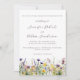 Convide seus entes queridos para um romântico casamento de verão com este charmoso convite de prados de flores silvestres. Apresentando um campo colorido de aquarela de flores silvestres ao longo da borda inferior, combinado com um roteiro elegante e fontes serif limpas, este design é perfeito para celebrações ao ar livre, jardim ou campo. Totalmente personalizável para se adequar aos seus detalhes e estilo de casamento.