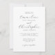 Este simples convite de casamento moderno e minimalista apresenta elegantes nomes modernos de escrituras, com pinceladas floridas nas letras, que se emparelha muito bem com a típica imagem falsa Cinzel, com um elegante contraste entre os dois. Escreva-o de forma mais elegante, com uma mistura de modernos e antigos. Disponível no impressão, como download digital ou ambos! Simples modelo de casamento preto e branco.