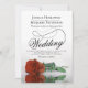 Este belo convite para o casamento apresenta uma bela fotografia de um rosa cor de laranja, cor de laranja, de solteiro longo, que se encontra ao seu lado, refletindo numa piscina de água com ondas e ondulações. O design apresenta um roteiro de caligrafia rico com um fazer de cauda longa e encaracolada, moderno e clássico. Uma maneira elegante, sofisticada e chique de convidar seus amigos e família para compartilhar seu dia especial. A parte traseira da placa é uma cor de número queimado marmoreado com um padrão de descarga.