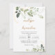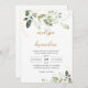 Convite Casamento de Script Eucalyptus Monogramas, Dourado