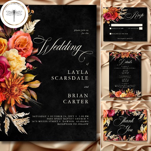Entra num reino de elegância requintada com o nosso convite para casamento floral negro e humorado. Projetado para cativar os sentidos, esse convite ostenta um fundo negro impressionante adornado com uma explosão de flores vibrantes em tons de burro profundo, magenta, laranja, ouro e creme, complementados por uma folhagem verde-oliva e botânicos secos ao boho. O texto elegante e cremoso adiciona delicadamente um toque de romance ao fascínio geral. Aceite a opulência dos tons ricos e dê o tom para seu dia especial com este convite maravilhoso, certamente deixando uma impressão duradoura para seus convidados. Criado pela imprensa simplesmente de farmácia.