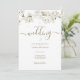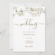 Bonito convite floral branco de casamento, com um delicado primavera, florescente, reunindo os detalhes do seu casamento em elegantes letras de ouro. Personalize com seus detalhes de eventos especiais. Os traços inversos dispersaram pétalas brancas e florescentes. Projetado por Thisnotme©