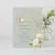 Um fabuloso spray floral branco com folhas de ouro sobre fundo verde-sábio. Bonita para qualquer estação.