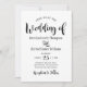 Convites modernos de casamento em formato vertical apresentam um esquema de cores preto e branco moderno com tipografia de escrita a negrito e divertida com detalhes de rolagem de na moda. Personalize o texto personalizado casual, mas elegante, para o dia do seu casamento.
