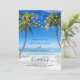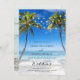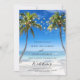 Elegante Beach String Lights Modern Script Wedding Invitation - Nosso convite de casamento apresenta uma bela praia tropical com uma praia branca arenosa e palmeiras adornadas com luzes brilhantes. O convite perfeito para o seu casamento na praia. A parte de trás do convite apresenta a sua foto favorita. O convite também estará disponível sem fotos. O Convite de Casamento faz parte de uma coleção. Desenhado pela Designer de Casamento Beverly Arena-Bainbridge Magnolia & Thistle