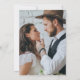 Este simples convite de casamento moderno apresenta texto verde sábio sobre fundo branco. Adicione os nomes da noiva e do noivo na caligrafia de escrita manual do na moda e os detalhes na fonte sans serif. Substitua facilmente a imagem de exemplo no verso por sua própria foto.