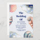Convite Casamento de Seashell de Praia marinho Azul Elegan